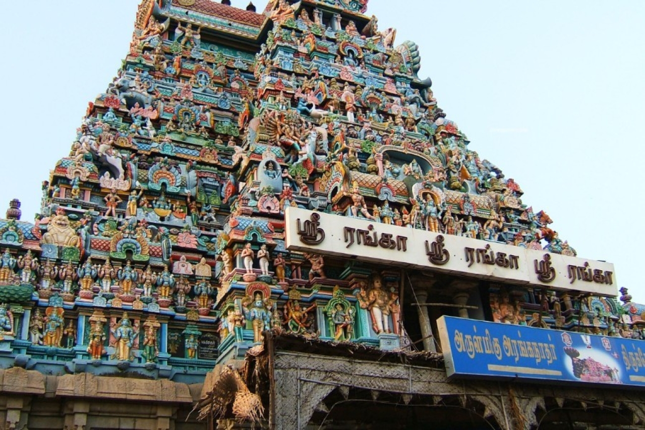 • En route visit Trichy covering Sri Ranganathaswamy Temple, dedicated to Vishnu, the enormous temple was built in the 17th century and has 21 gopurams exhibiting a profusion of multicolored gods. The temple is sprawled over a large area, on an island as the Cauvery flows on both sides.